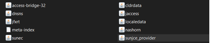 您可以在上面的屏幕截图中清楚地看到可用的不同JAR文件:access-bridge-32.jar,localedata.jar等。您还可以看到转到上述路径位置。