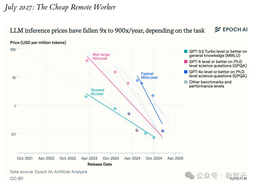 就在其他公司似乎要迎头赶上之际,OpenBrain通过发布Agent-1-mini再次将竞争对手远远甩在身后——这款模型的成本仅为Agent-1的十分之一,且更容易针对不同应用进行微调。