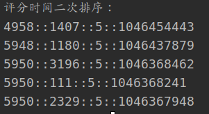 ratingsRdd.map(line => { val row = line.split("::") ((new SecondSortKey(row(2).toInt, row(3).toInt)), line) }) .sortByKey(false) .map(_._2) .take(10) .foreach(println) }