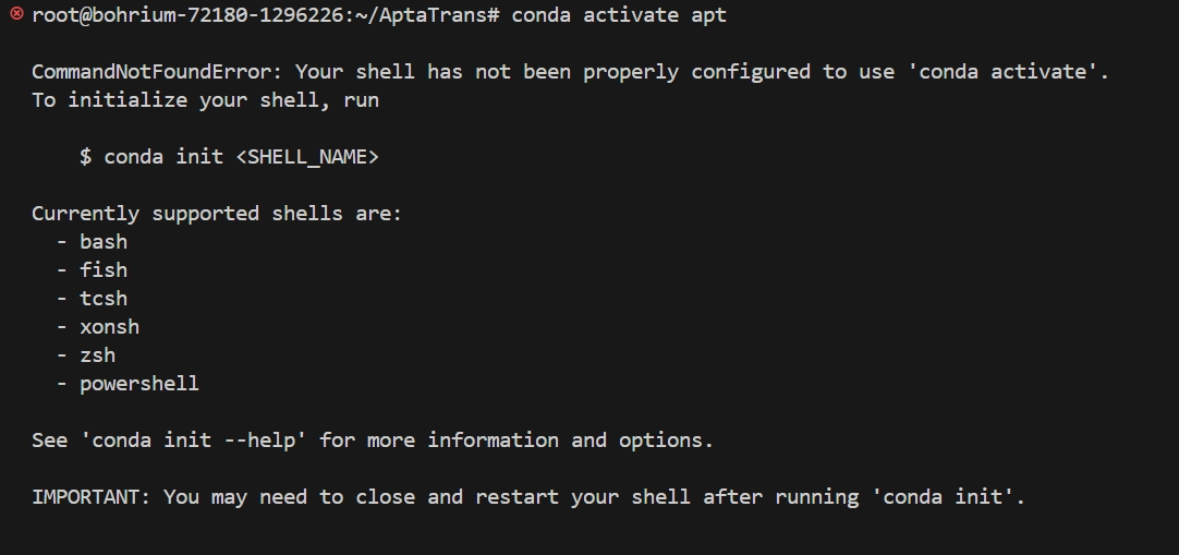 解决conda init 先运行conda init 后另起终端 conda activate apt