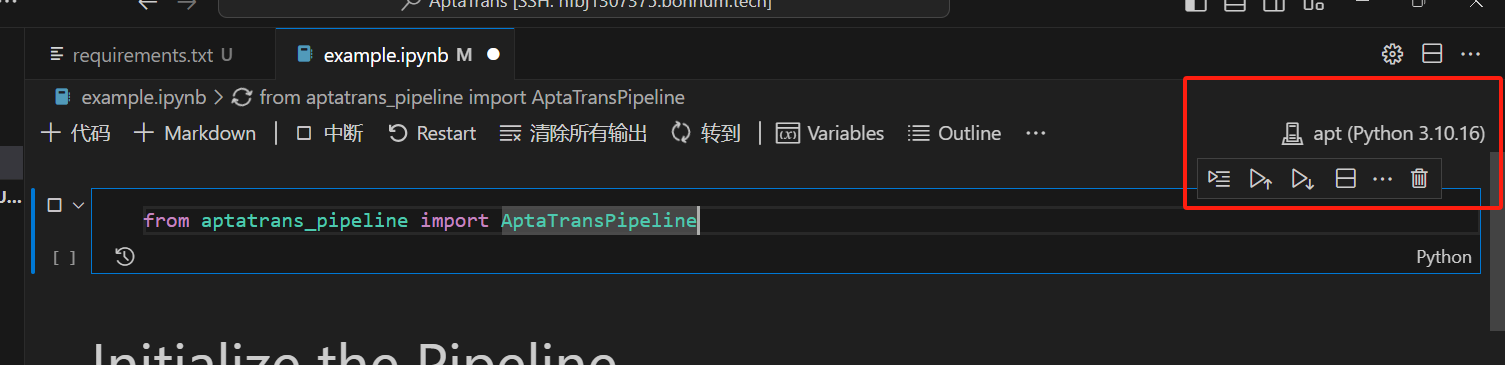 运行示例examples.ipynb 内核选择刚刚创建的apt 环境