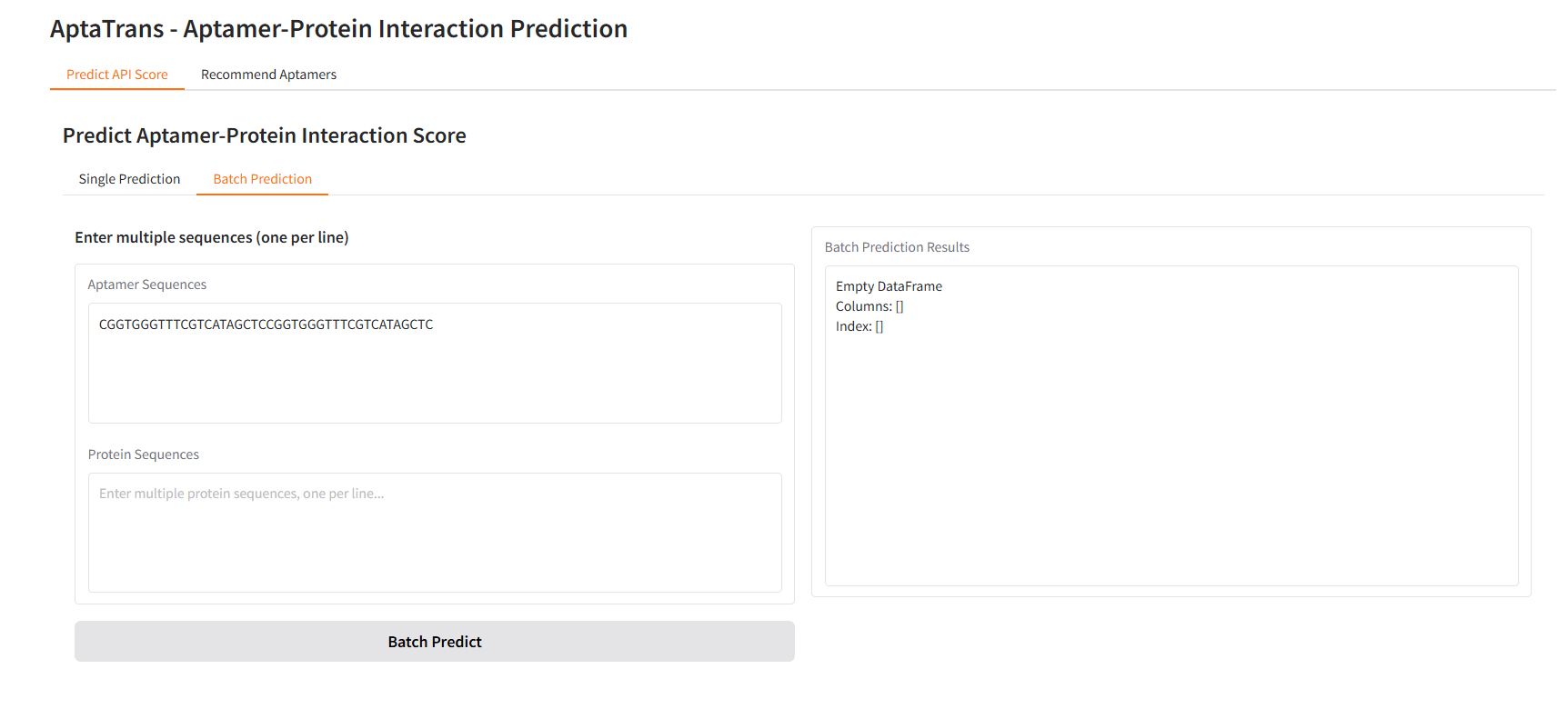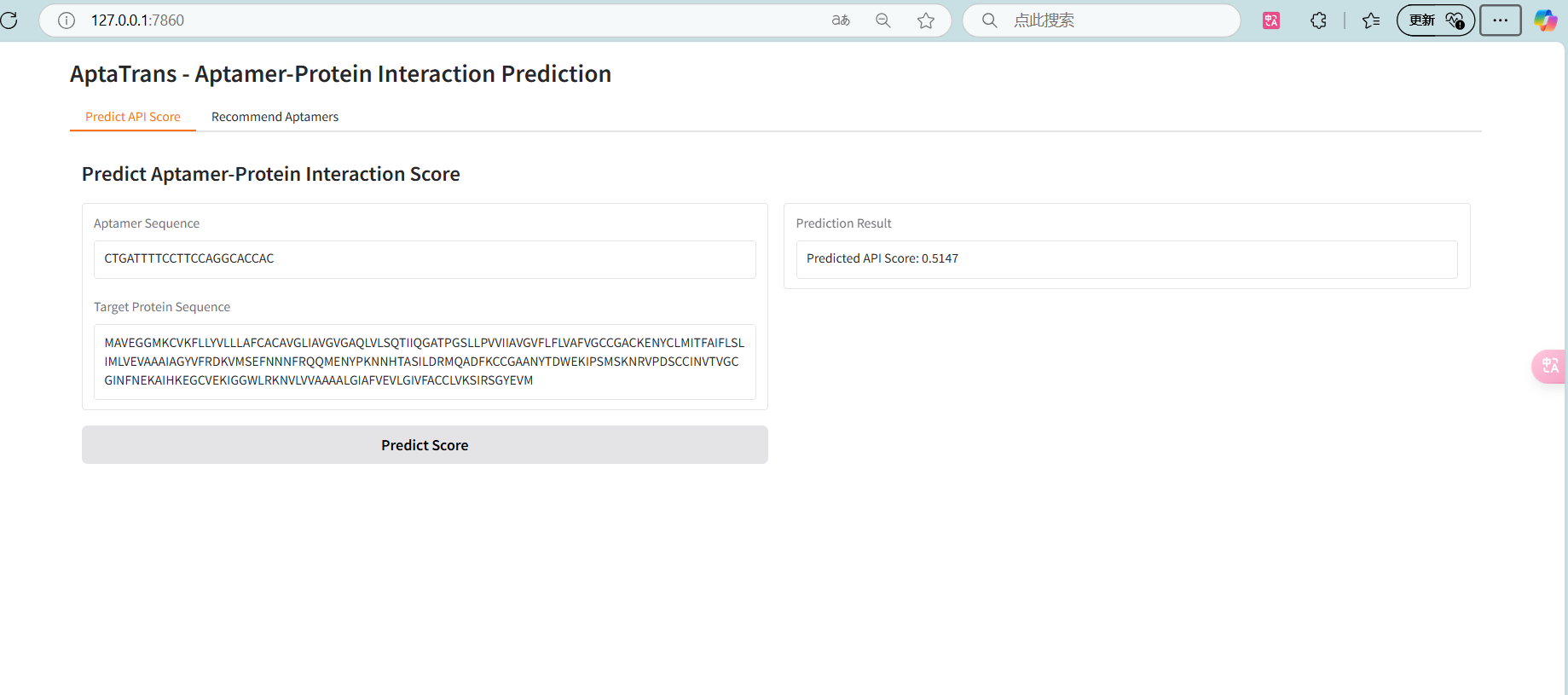 gr.Markdown("## Predict Aptamer-Protein Interaction Score")