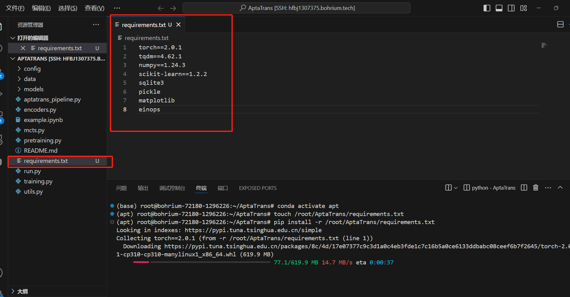 pip install -r /root/AptaTrans/requirements.txttorch==2.0.1