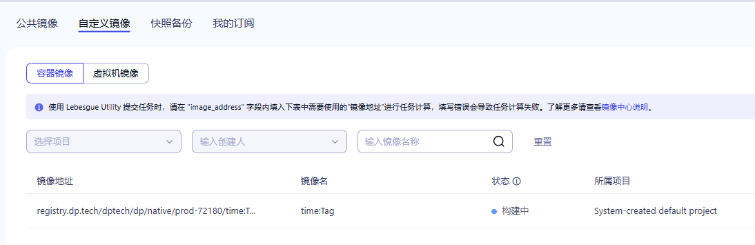 访问 Bohrium 平台:https://bohrium.dp.tech/nodes,在刚才创建的新节点上按照下图序号点击图标,弹出Create Image对话框,填写信息后等待镜像创建: