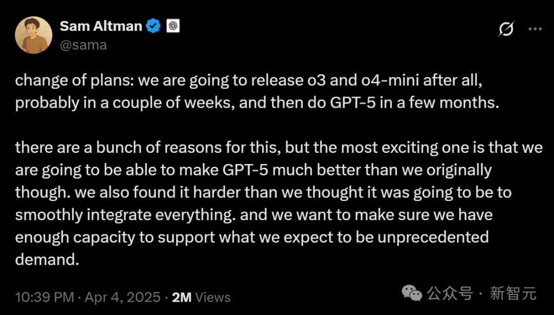 虽然比原定时间推迟了,但奥特曼的一番话,再次把所有人对GPT-5的期待拉满。
