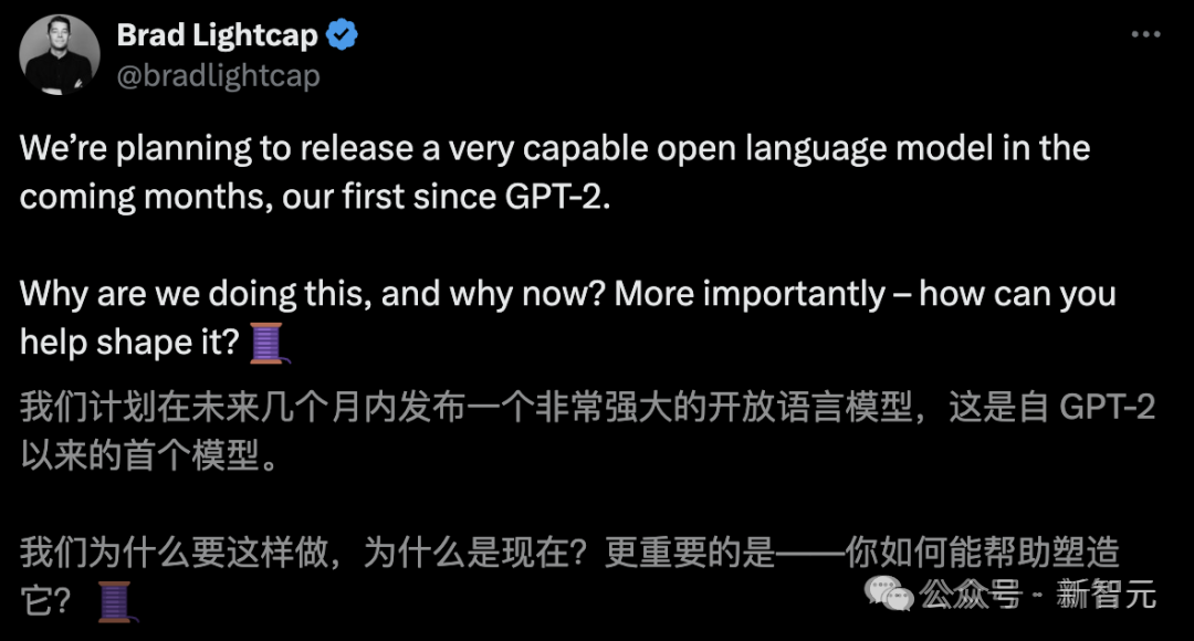 此前,COO Brad Lightcap曾发长文,解释了团队为何最终选择开源,以及为什么是现在。