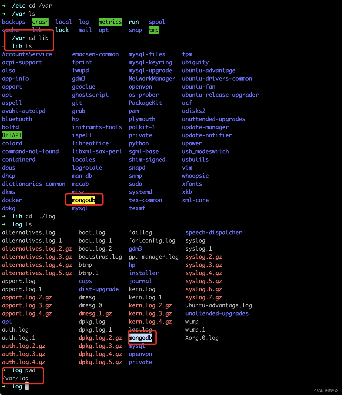 如果是根据我上面的流程通过包管理器安装的,那么数据目录 /var/lib/mongodb和日志目录/var/log/mongodb会在安装过程中创建