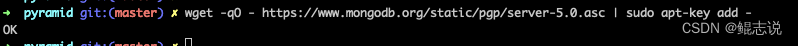 wget -qO - https://www.mongodb.org/static/pgp/server-5.0.asc | sudo apt-key add -成功执行完如下显示 OK