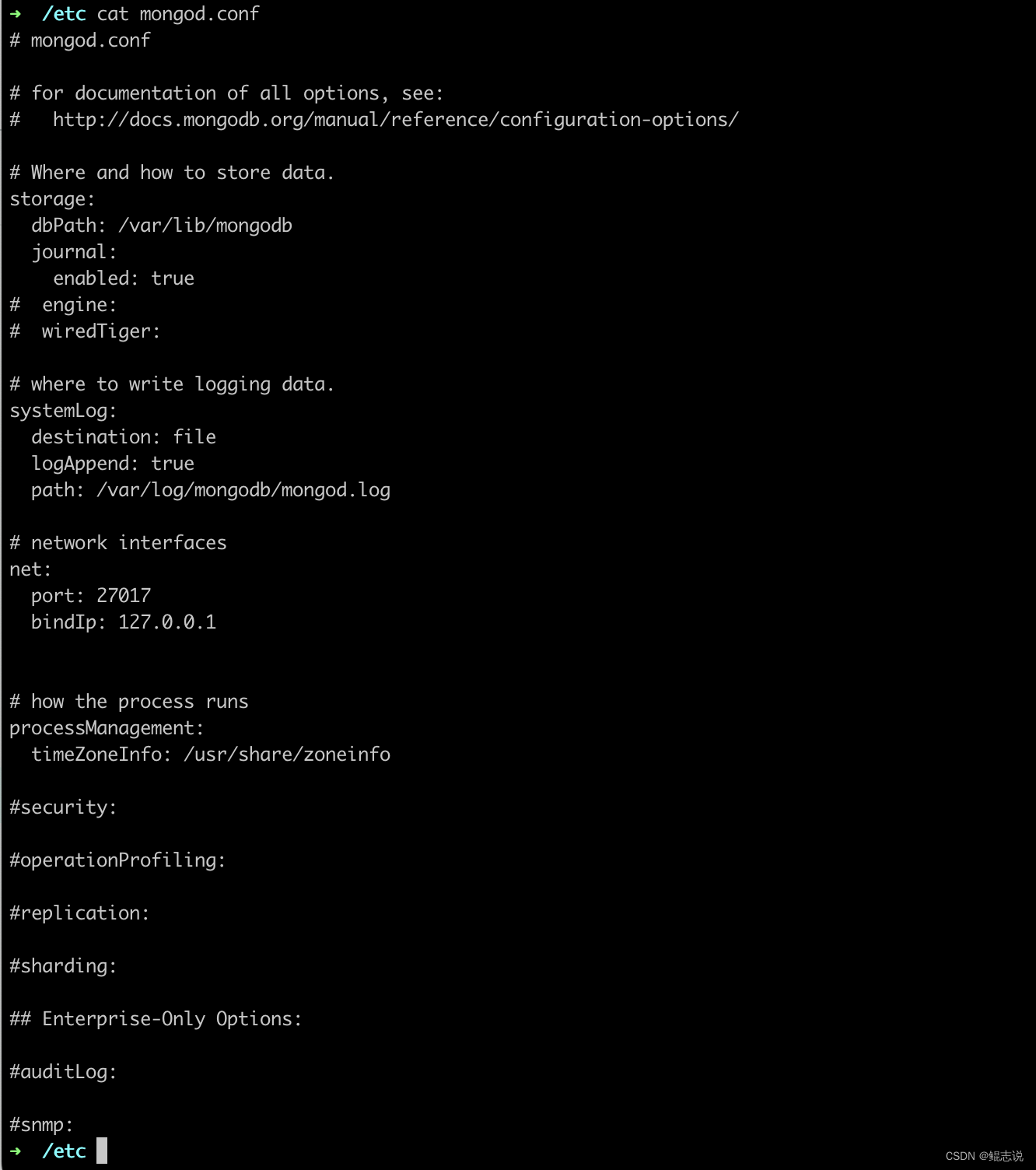 [initandlisten] waiting for connections on port 27017sudo service mongod stopsudo service mongod restart默认连接端口 27017的mongod