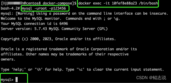 docker exec -it 10fef8e88a23 /bin/bashmysql -uroot -p123456