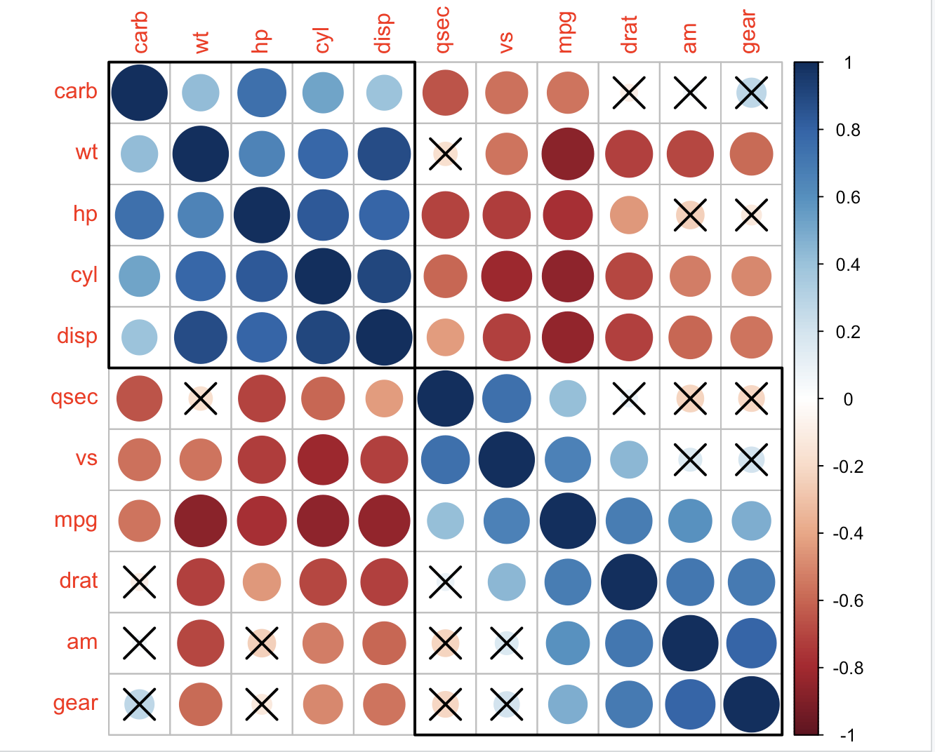 corrplot(M, lowCI = testRes$lowCI, uppCI = testRes$uppCI, order = 'hclust',