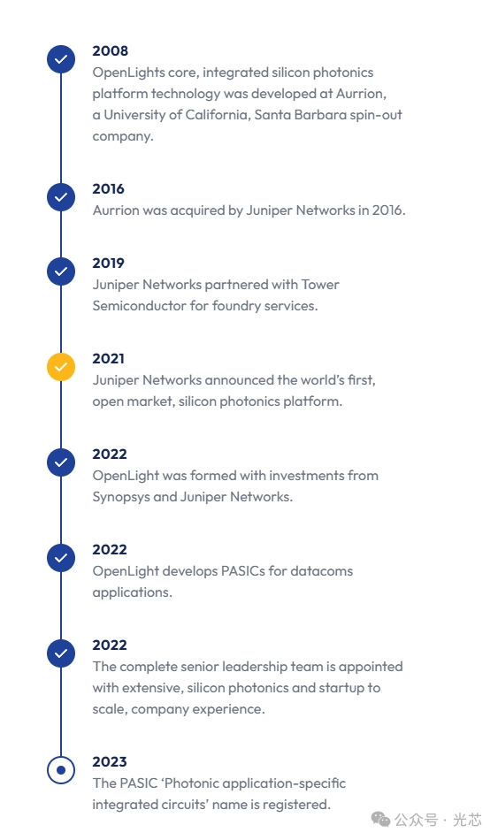 OpenLight是一家2022年由新思科技和Jupiter Networks投资成立的公司,核心技术就是与Tower 半导体合作开发的基于Die bonding异质集成硅光技术,面向数据中心等场景提供完整的高集成度光芯片解决方案。同时OpenLight也提供PDK,支持客户基于他们的异质集成PDK设计和定制化流片。
