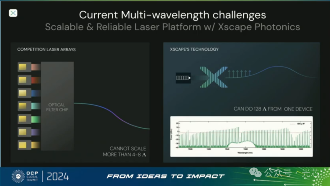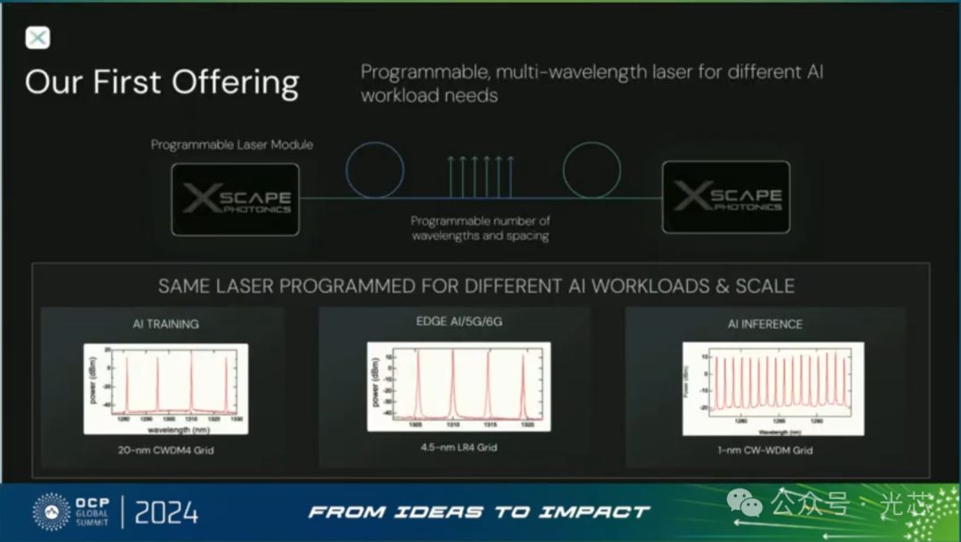 OCP 2024很热闹,还专门有一个短距高速光互联的专题workshop,Xscape、Celestial AI、旭创、Dell等单位都做了精彩的报告,报告ppt和视频都可以免费下载,一下就有了好多文章素材。先来看看Xscape Photonics公司的光频梳光源。