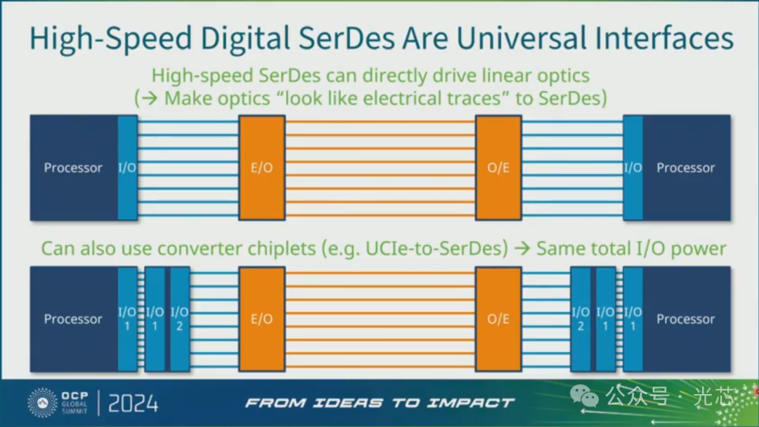 具体的技术分析有很多公众号讲过了,感觉这次他也没有新的内容,这里就只分享他的ppt出来了。不过看他起的名字Socket-Mountable Optics,倒是跟旭创讲的Mountable CPO很像了。另外就是垂直耦合的封装形态,像台积电的COUPE平台很大的一个特点+优点就在于能够实现宽带超低损耗的垂直耦合,在晶圆测试,高密封装上应该还是有优势的。