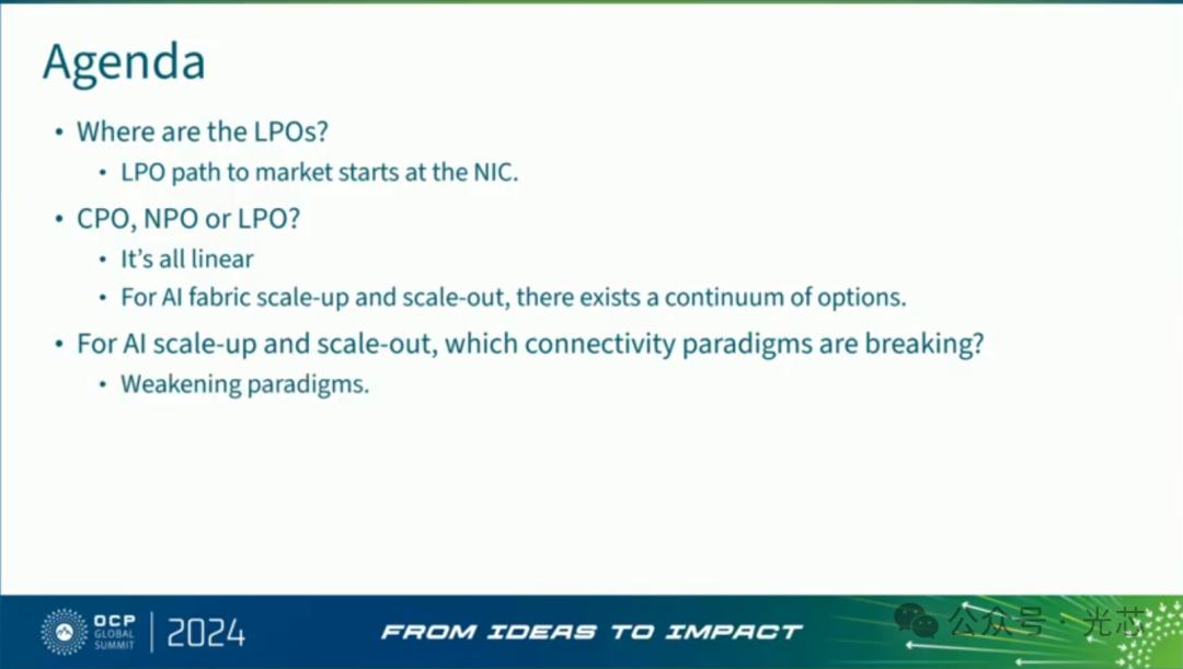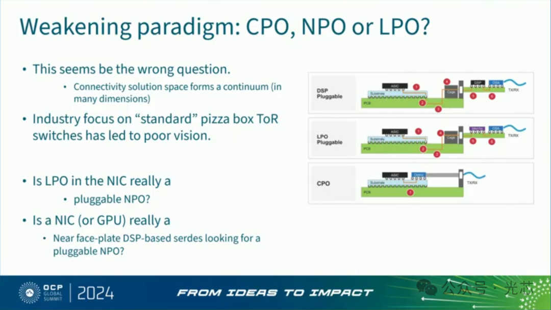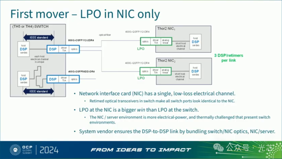 ① LPO可插拔模块最合适的场景在服务器侧的高速光纤网卡NIC部署,而不是直接进Switch。