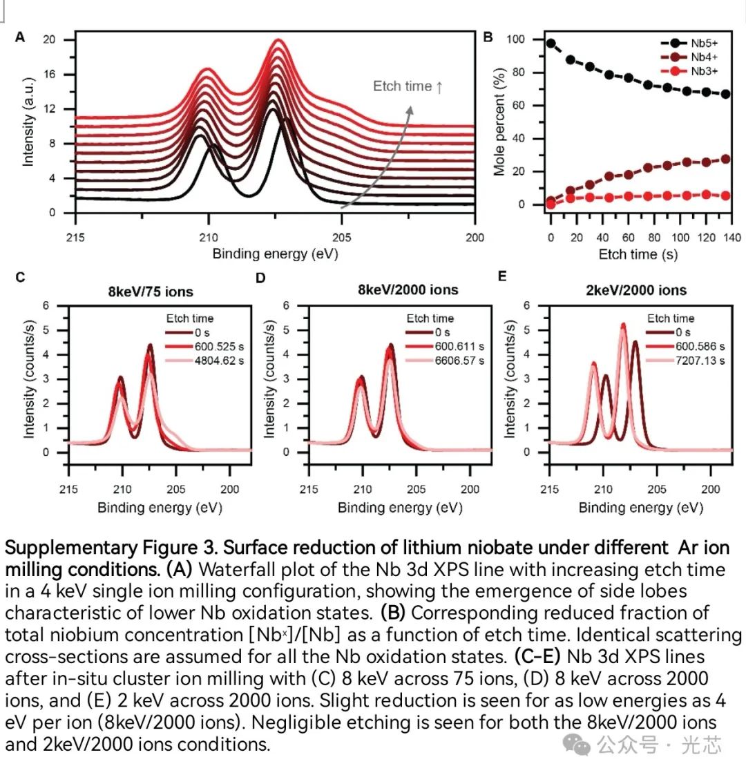 - 能量与时间:4 keV Ar⁺刻蚀30秒可移除20-25 nm表面层,平衡损伤与导电性(补充图3)。但过长时间(>60秒)将导致体缺陷增加,反而不利于稳定性。