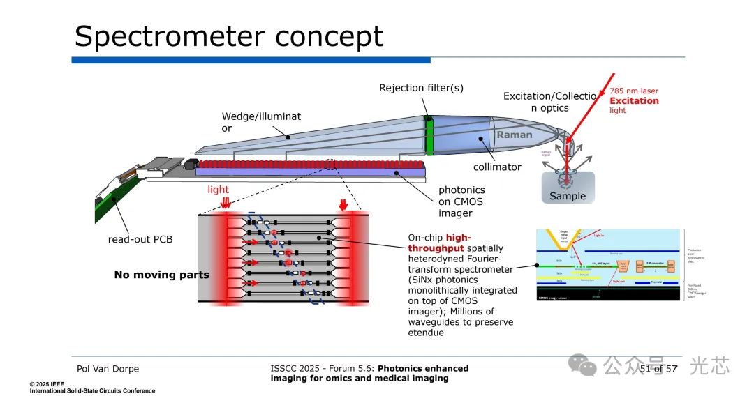 本文基于imec在ISSCC 2025报告的部分内容。片上拉曼光谱仪作为光子学与CMOS技术融合的典范,正推动分子检测从实验室走向临床即时诊断(POCT)。