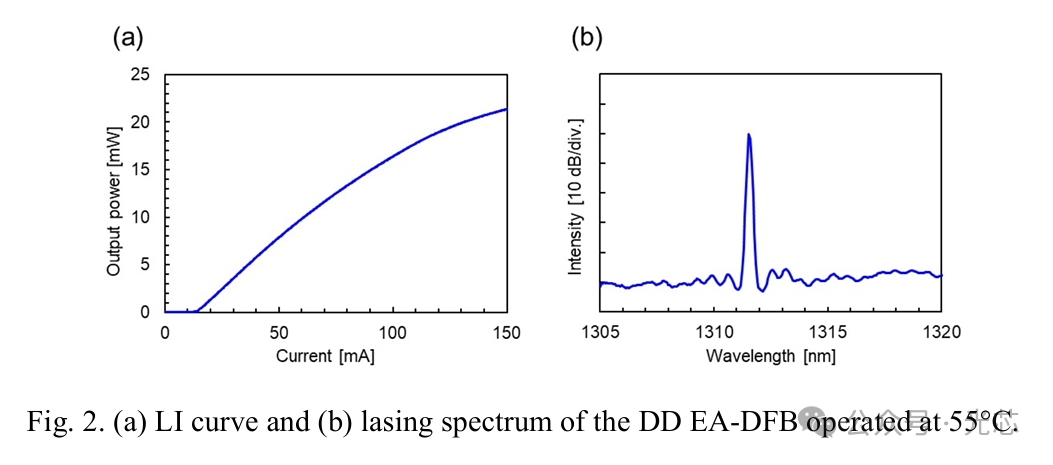 实现差分驱动的关键在于激光器(DFB)与调制器(EAM)的电隔离。传统方案依赖外部阻抗控制组件,而本文提出的 DD EA-DFB 通过芯片级电隔离结构(图 1),在不增加额外组件的前提下实现了 RF 信号隔离。