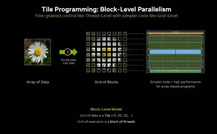 虽然操作的是分块,但语法层面仍是熟悉的数组运算。我认为这种范式本质上更直观:开发者无需深入线程细节,只需关注数据分块策略,编译器会自动处理并行化和内存优化。