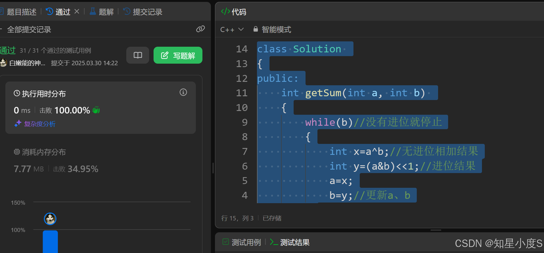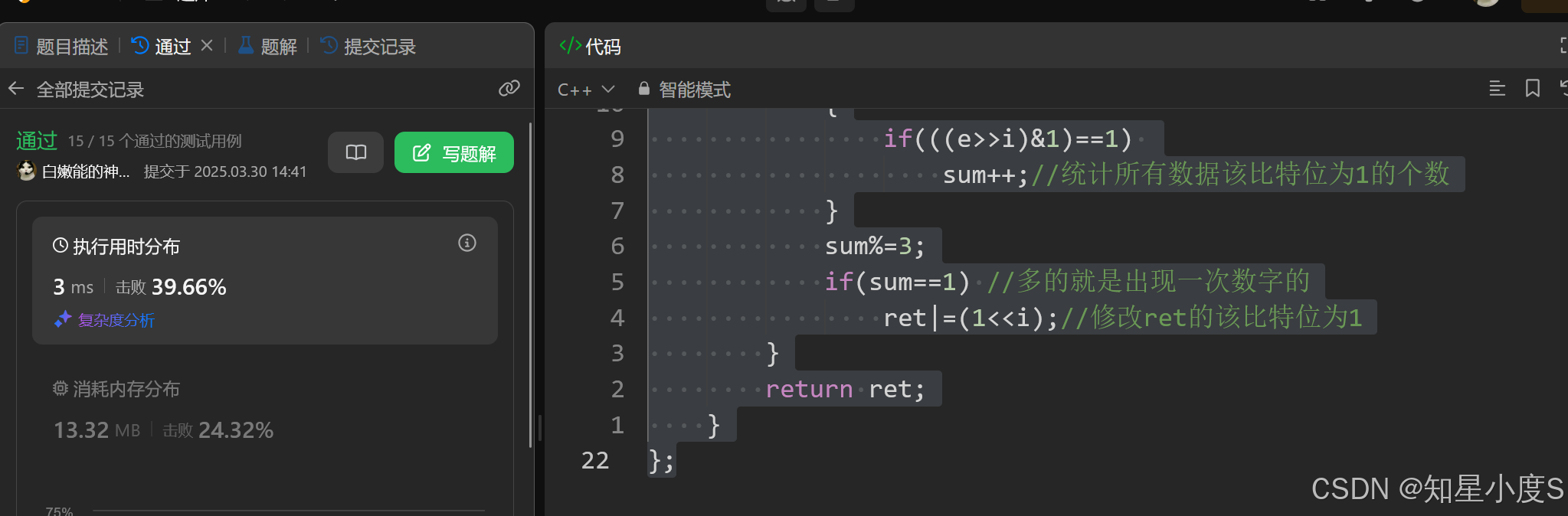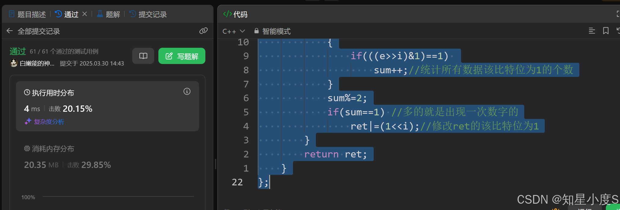 也是可以通过的,当然这肯定是不太正确的解法,接下来我们使用位运算来解决这个问题~