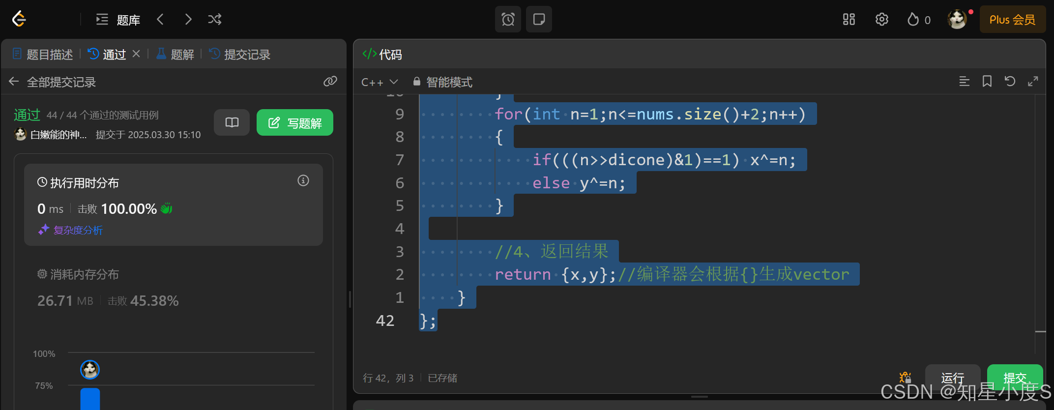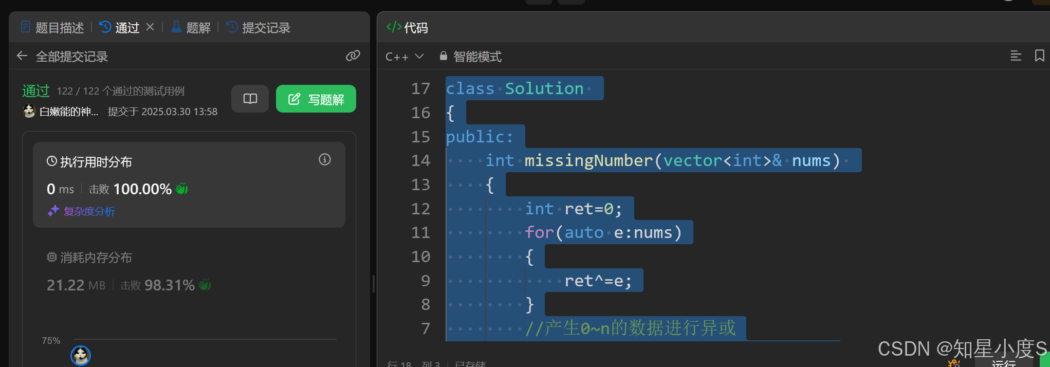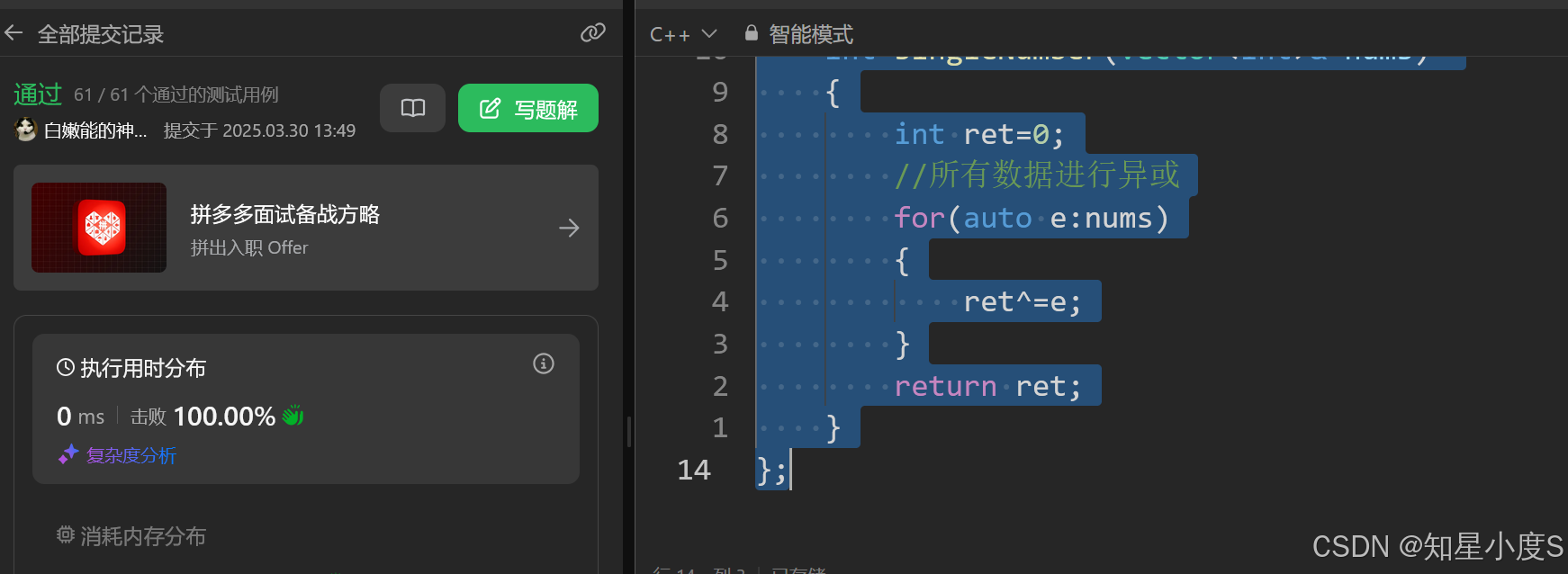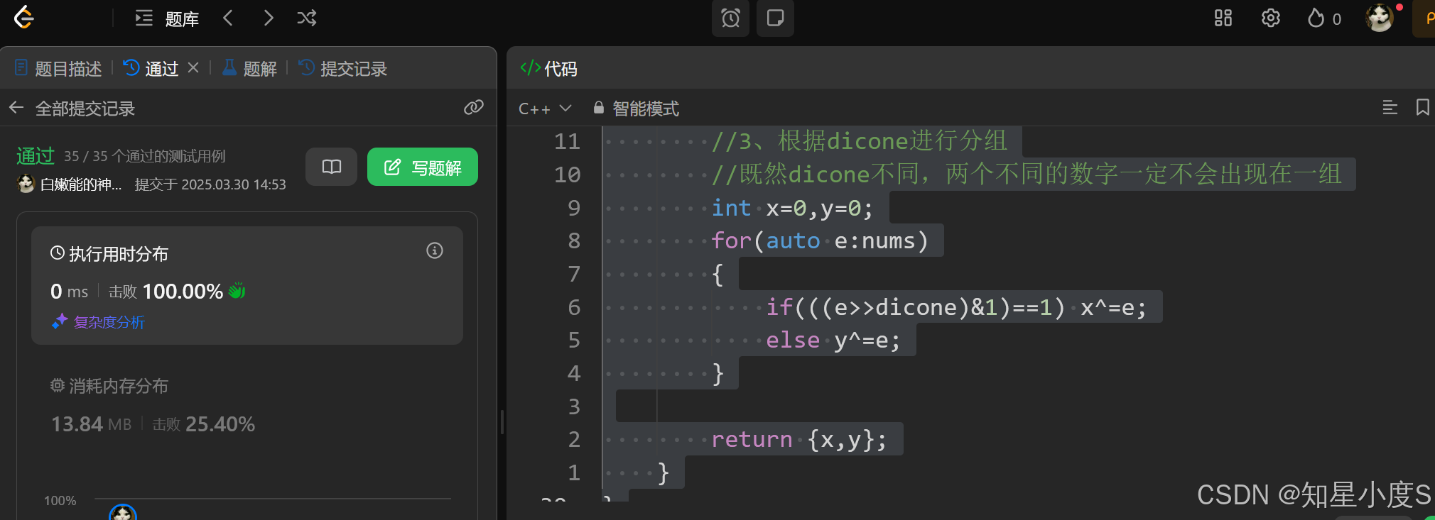 也是可以通过的,当然这肯定是不太正确的解法,接下来我们使用位运算来解决这个问题~