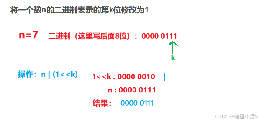 前面的操作就是直接变成相反的,如果我们现在想要把第k位修改为1,它可能最开始是1,就不需要变化了,如果最开始为0,我们把它变成1~