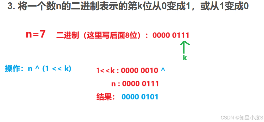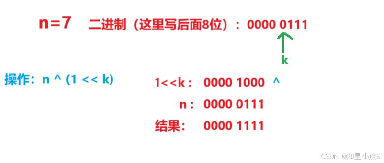 n = n ^ (1 << k) 举例: