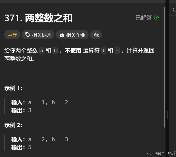 可能一看这个题目挺简单的,但是不可以使用+,-符号啊,不过有一种投机取巧的方法就是直接return a+b;