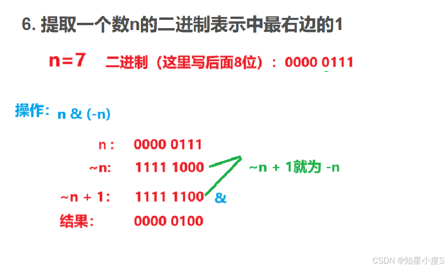 n & -n 或 n & (~n + 1) 举例: