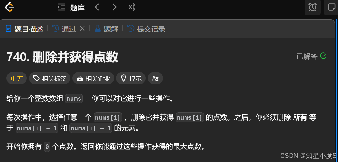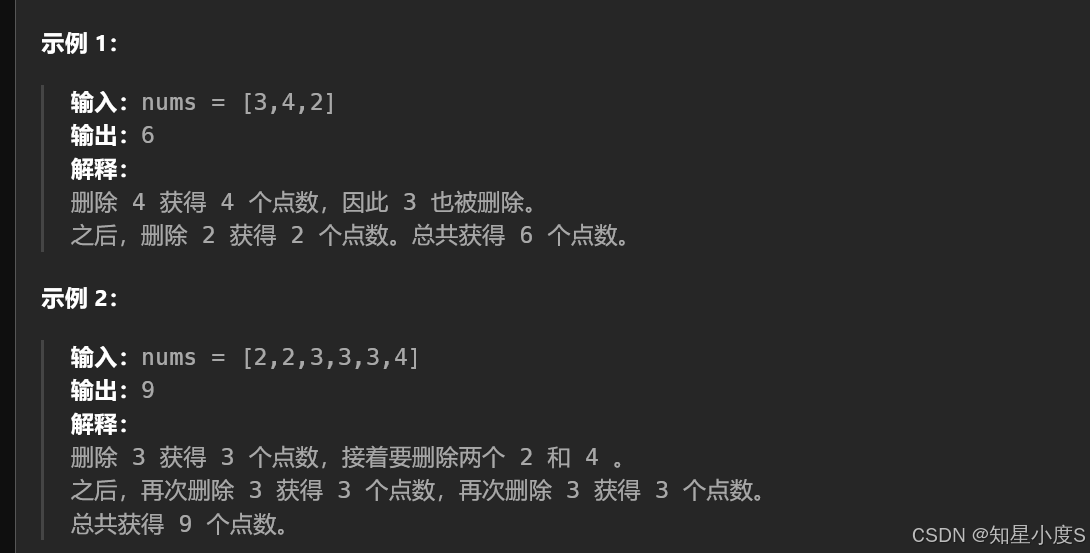 这个题目看起来有点难,看题目要求相邻的两个数是不可以同时存在的,这个不就与我们的打家劫舍类似嘛?那么我们怎么将这个题目与打家劫舍联系起来呢?这里是数不能相邻,那么我们就可以把每一个数的累加和保存到一个数组中,利用数组下标就可以找到他~同时数组下标是相邻的,再对这个数组用一次打家劫舍的思想就可以~