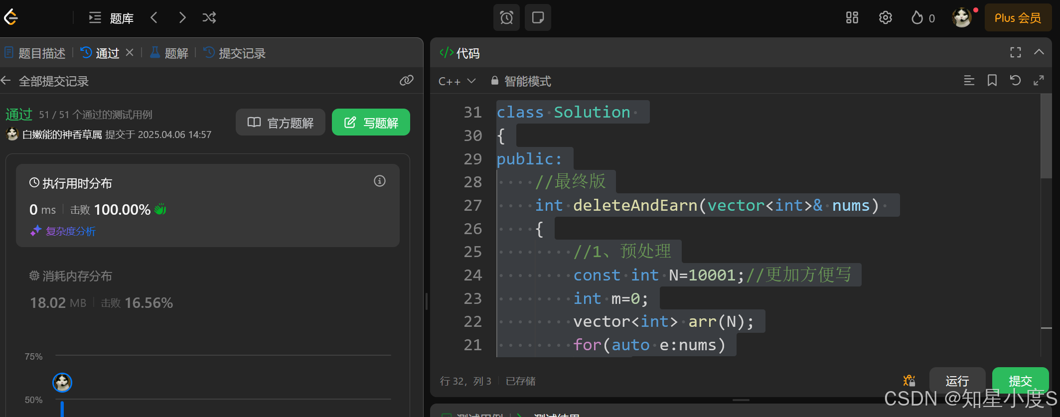 事实上,我们这里还可以进一步优化,题目给出了数据范围,那我直接创建一个跟最大数据一样的数组就好~