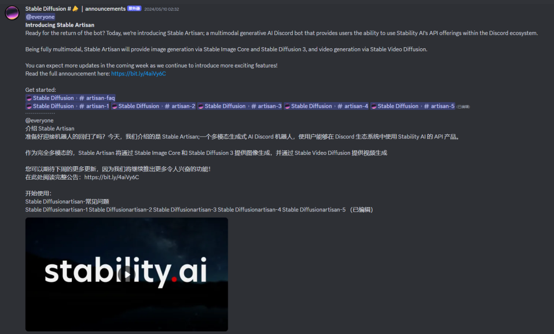 而全新DiT架构、炒的沸沸扬扬的SD3,在他们决定接给Discord的机器人Stable Artisan之后,需要普通用户付费开会员才能使用,我觉得也大概率不会开源了。
