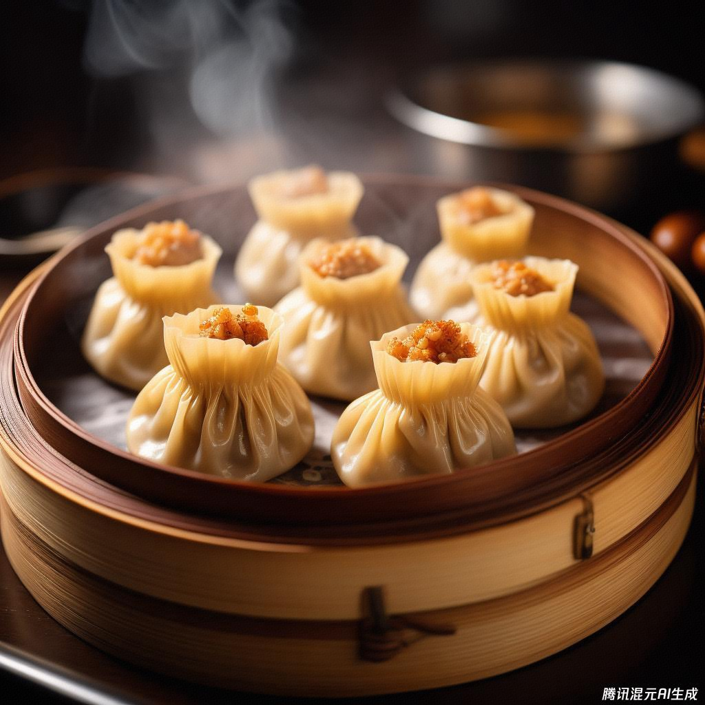 生成照片:热气腾腾的烧麦,美食摄影风格