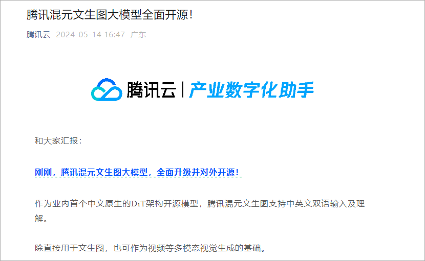 直到昨天,我看到了腾讯混元,默默地开源了他们的AI绘图大模型,嗯,就那么的默默的开源了。