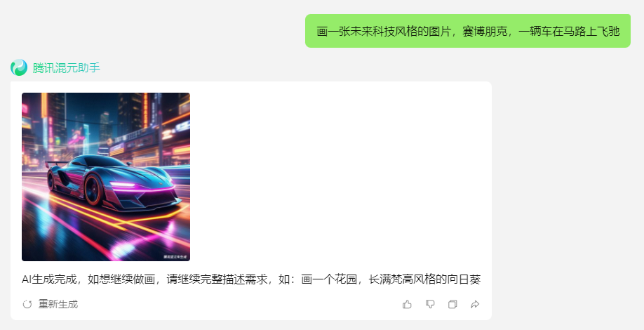 不过我找了一圈,发现对普通的用户,腾讯混元也提供了在线的免费使用的方式,AI绘图直接集成在了他们的混元助手里。