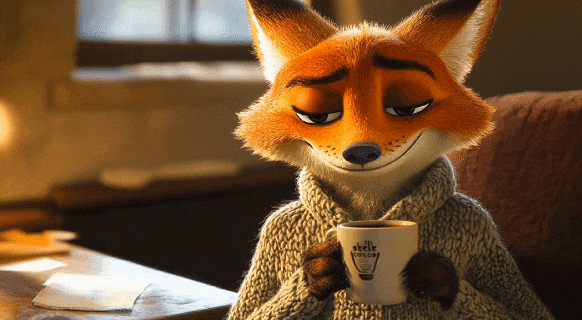 比如这个狐狸喝水的动作和被子里冒的热气,自然、生动且合理。