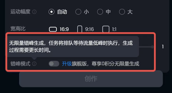 开了以后,排队等他们流量低峰时再去跑,用时间来换免费,用户白嫖到了算力,Vidu也平衡了波峰波谷。唯一的弊端就是,得开那档最贵的旗舰版才能用。
