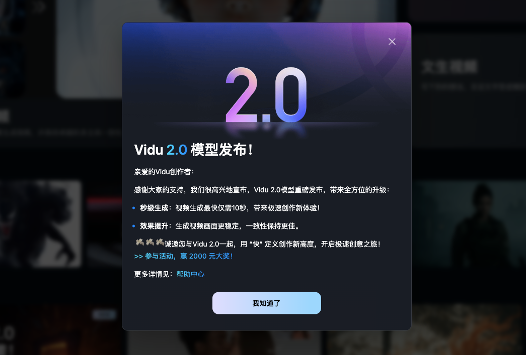今天中午,Vidu突然发了他们的AI视频模型Vidu2.0。