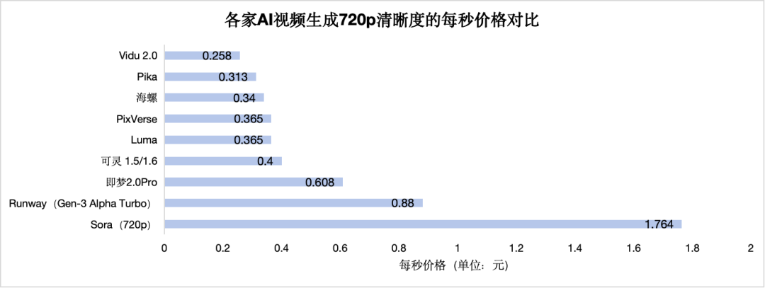 同样都是720p的视频,Vidu一秒才不到三毛钱。