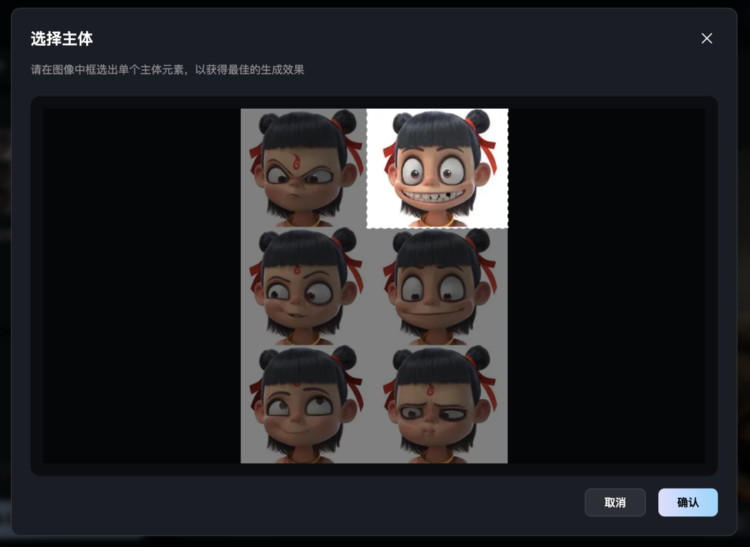 例如哪吒的这组参考,6个表情的原图直接传。不需要再用ps啥的裁剪半天,框选工具一拉,就能精准选到你需要用的表情,真的,太能给影视和游戏制作省事儿了。。。