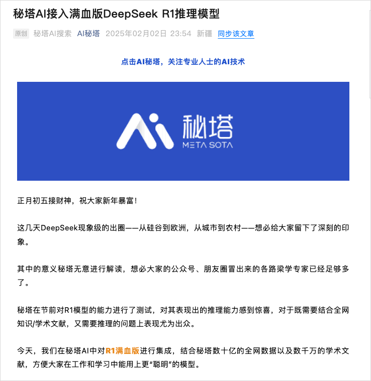 所以,想用联网版的R1,直接去秘塔AI搜索,完事。
