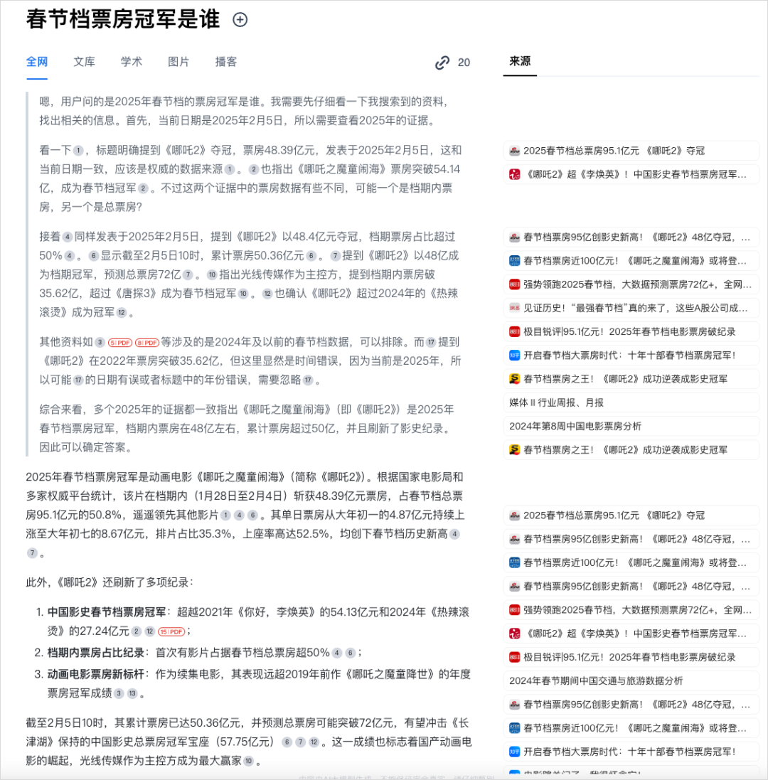 来源不仅抓了网页,还有PDF,比一般的AI搜索全面多了。