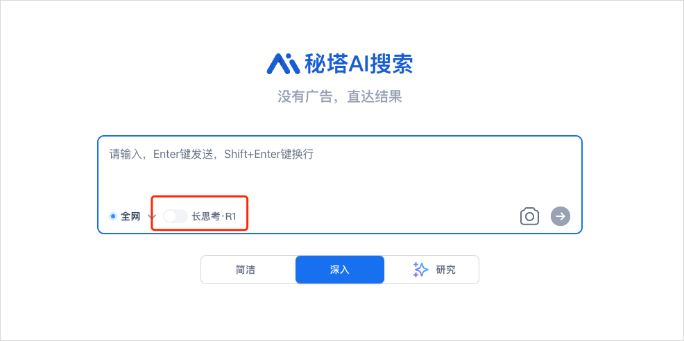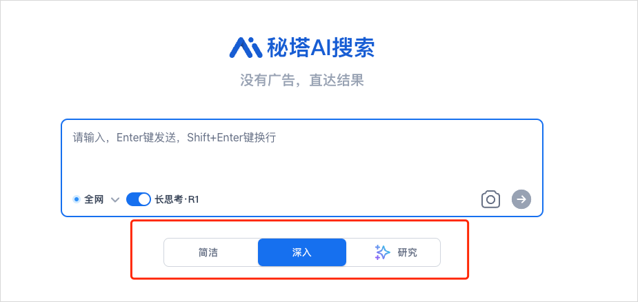 就是秘塔AI有三种模式,简介、深入、研究。