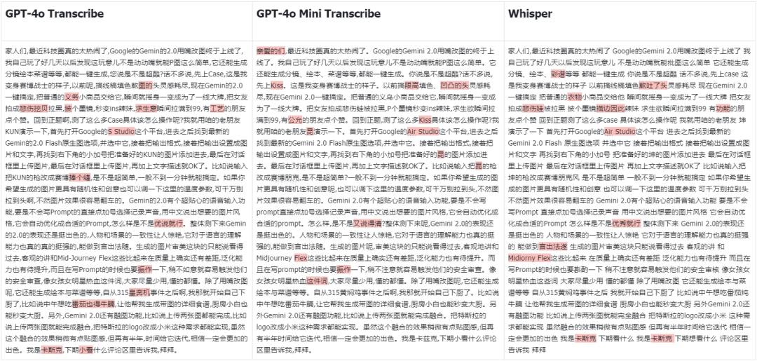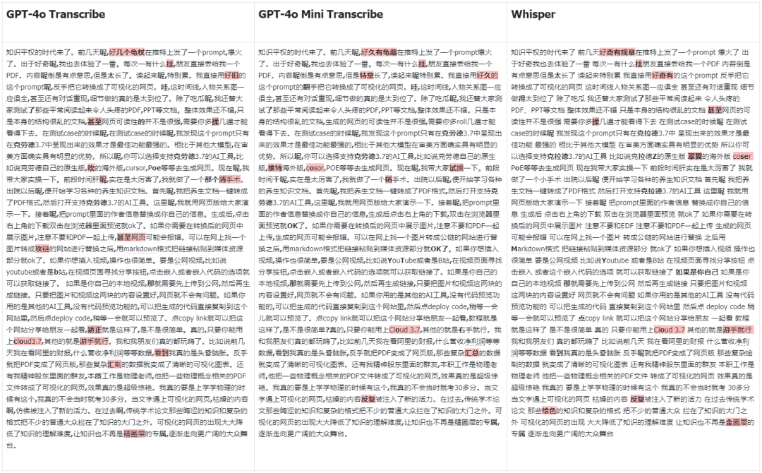 其实都大差不差,这么一看,GPT-4o-mini-transcribe的性价比感觉非常突出。