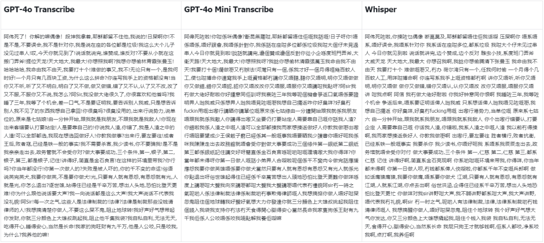 GPT-4o-transcribe这个系列的两个模型,有一个蛮不错的特点,就是会自动清噪和去除非主线人物的语音识别。