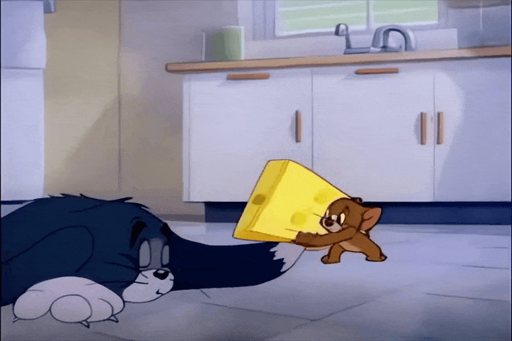 2、运动自然性:奶酪悬停在半空中,而不是自然地落到地上。