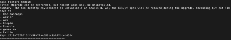 以下图为例,Anolis OS 8中不再支持kde,评估报告中给出了这样的提示: