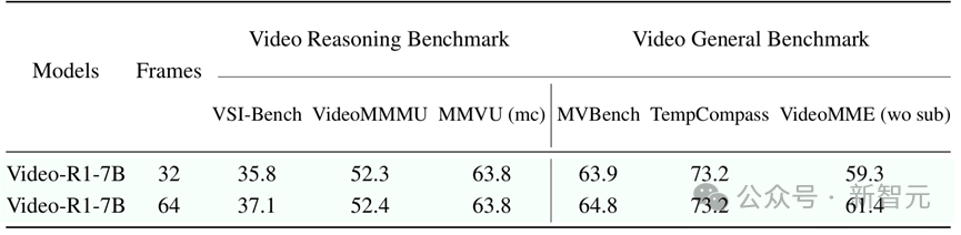 还有一个非常关键的发现:帧数越多,推理越准。当模型输入的视频帧数从16增加到32,再到64,测试表现都跟着上台阶。这说明,对时间线的理解力,正是视频推理模型的决胜点——谁能处理更长的视频,谁就更有未来。