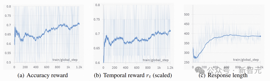 不仅如此,从训练动态中也能看出门道。随着强化学习的推进,模型获得的准确率奖励和时间奖励在持续上升,说明它不仅越来越会答题,还越来越懂得「时间逻辑」这回事。