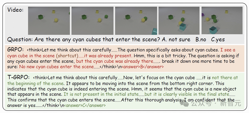 研究团队指出,如果还按照传统GRPO的套路来训练AI看视频,会踩两个坑: